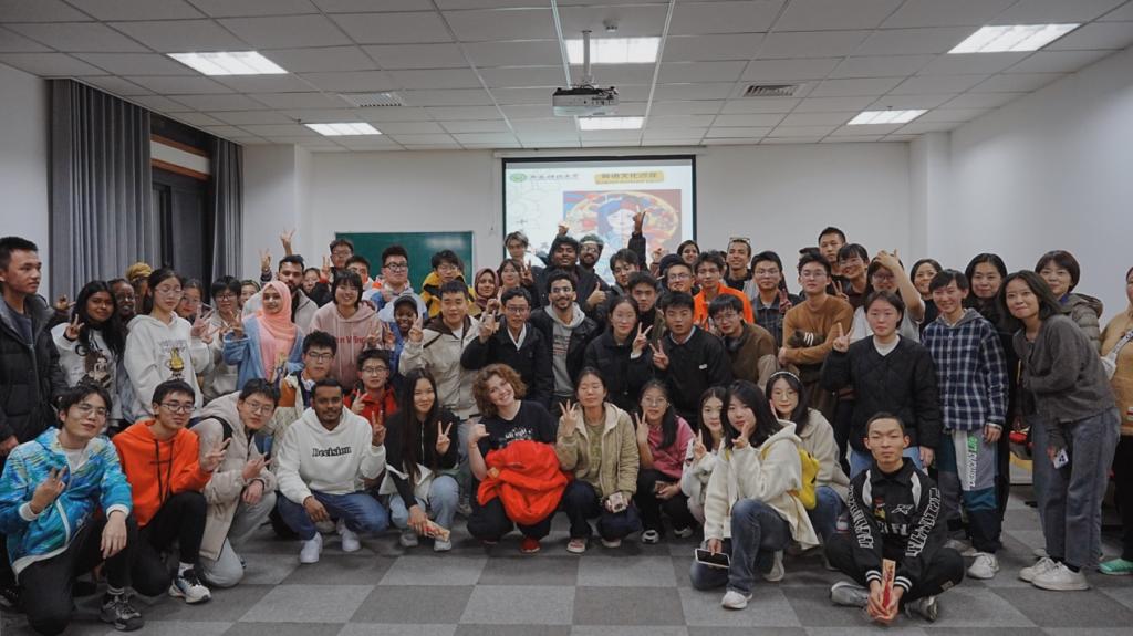 为增进对“一带一路”倡议内涵的了解、促进文化交流,11月22日晚,在临潼校区骊山校园图书馆沙龙区,球王会体育官方网站联合国际交流与合作处共同举办“十年丝路·再启新程”系列英语文化沙龙活动(第二期),学院大英一部主任党婉青、副主任骆一佳、闫书箐、刘小爱、叶心爱、大英二部管延红、杨丽娜、英语系杨宁、于凡、国际汉语教研室郭旭东等教师,全校各学院英语爱好者与来自孟加拉国、哈萨克斯坦、巴基斯坦、摩洛哥等国家的国际留学生参加了活动,本次活动的主题为“一带一路·文化之旅”。