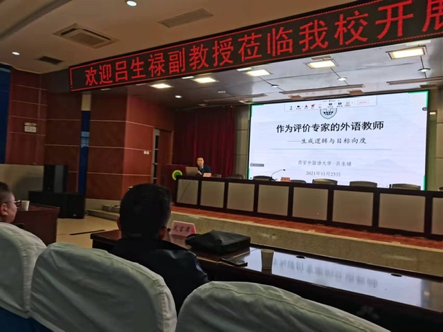 11月25日下午,西安外国语大学吕生禄副教授、硕士生导师吕生禄博士应邀来球王会体育官网进行学术交流,作了题为《作为评价专家的外语教师:生成逻辑与目标向度》的学术报告。讲座线上线下同时举行,由球王会体育官方网站院长师新民主持,学院全体外语教师、研究生及部分本科生聆听了报告。
