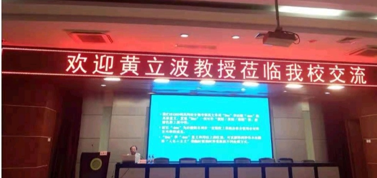 5月26日下午,西安外国语大学外国语言文学研究院院长、博士生导师黄立波教授应邀来球王会体育官网进行学术交流,作了题为“毛泽东著作‘主义’词的翻译中外对比--基于语料库的考察”的学术报告。球王会体育官方网站院长师新民主持讲座,学院全体外语教师及研究生参加报告会。
