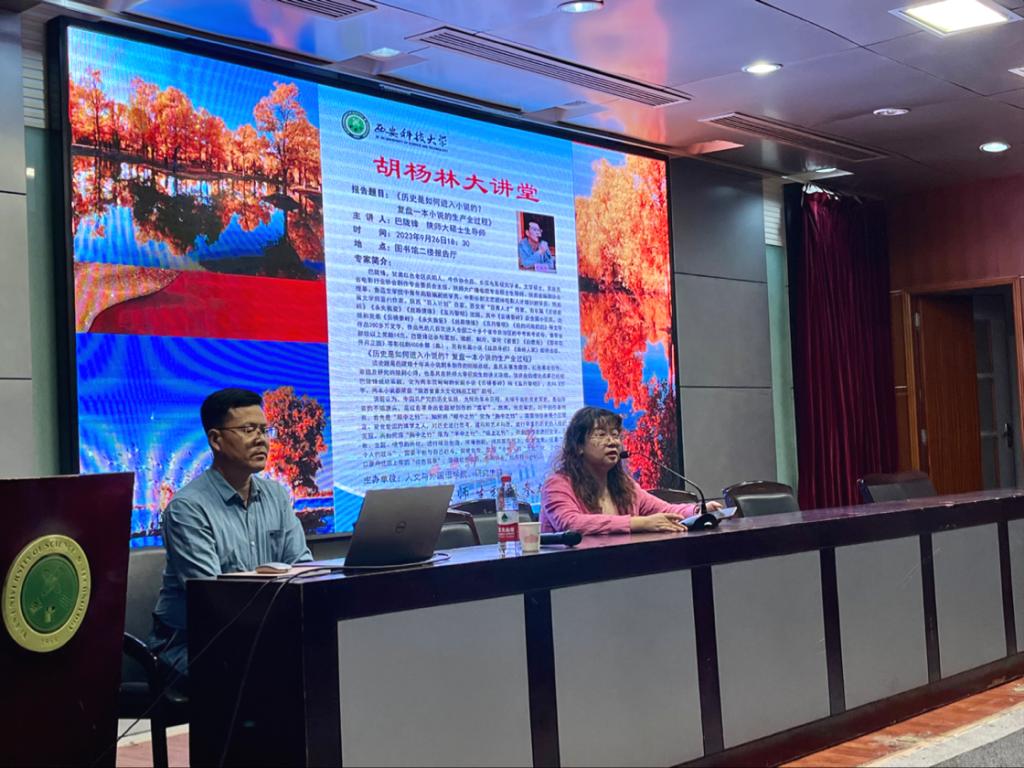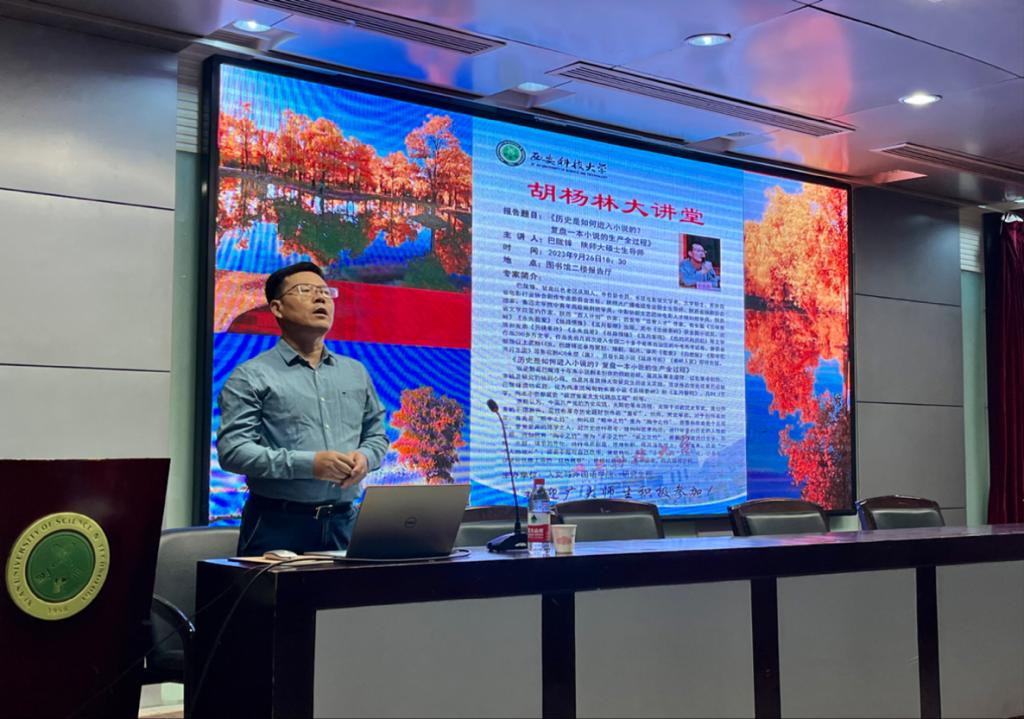 9月26日下午,由球王会体育官方网站联合研究生院承办的长篇小说写作学术讲座在球王会体育官方网站图书馆二楼报告厅成功举办,著名作家巴陇锋作了题为《历史是如何进入小说的?复盘一本小说的生产全过程》的学术分享。讲座由球王会体育官方网站副院长张辉主持,高宝萍教授、吴敏焕副教授参会交流,骊山校园400余名研究生参加。