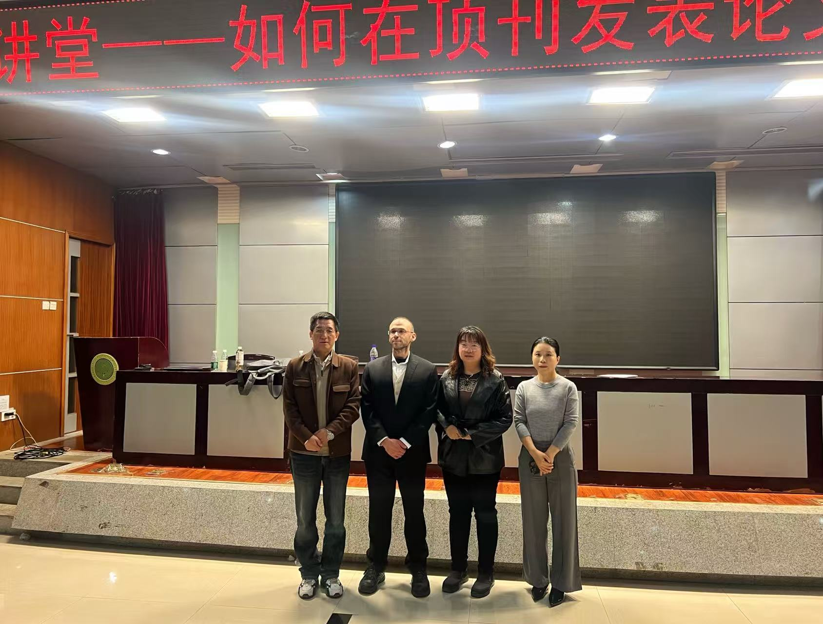 10月22日下午,球王会体育官方网站骊山校园图书馆二楼报告厅座无虚席,“胡杨林大讲堂”特邀深圳大学英语语言文学方向特聘教授Leonard Neidorf,以《如何在顶刊发表论文:哲学与实践探讨》为题,带来一场兼具深度与实用性的学术分享,为全校师生解析国际顶刊论文发表的核心逻辑与实操路径。