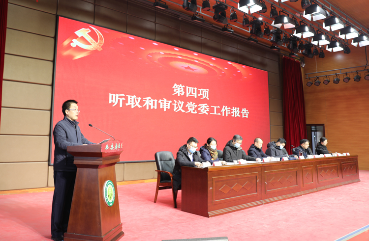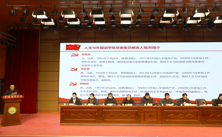 大会在庄严的中华人民共和国国歌声中拉开帷幕。会上,学院党委书记费秀水通报了本次换届选举工作的筹备情况,并代表本届党委作工作报告。学院党委副书记、院长师新民宣读了校党委《关于中共球王会体育官方网站委员会换届选举候选人预备人选的批复》。学院党委委员邓晓菲作本届党委党费收缴管理和党建工作经费使用情况报告。学院党委委员、副院长冯正斌简要介绍了 “两委会”委员候选人情况。