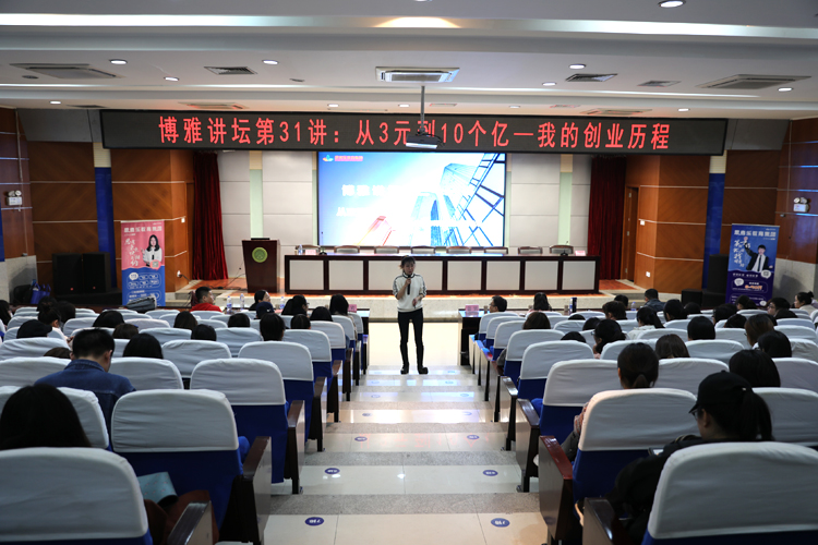 3月6日下午,球王会体育官方网站博雅论坛第31讲在临潼校区骊山校园图书馆二楼报告厅举行。英国伦敦大学高级访问学者、考研英语辅导专家、思考乐教育英语学科总监赵敏应邀以“从三元到十个亿——一个‘西安’女娃的创业故事”为题,结合自己在西安交通大学、西安电子科技大学、英国伦敦大学的求学经历以及在新东方教育集团、思考乐教育集团的工作和创业经历,与大家分享了学习、成长及创业的收获和感悟。