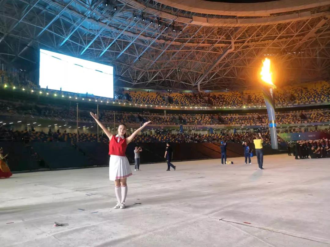 编者按:中华人民共和国第十四届运动会落幕了,赛场上有着许多激动人心的时刻,苏炳添再次创造全运会新纪录,马龙惜败于广东选手樊振东……全运风云一场更比一场激烈。在这场充斥着汗水与拼搏的赛场上,不仅有令人欢呼的运动健将,有在背后默默奉献的志愿者,还有这样一群学生,她们作为群众演员在全运会开幕式上展示了当代青年的青春与活力,展现着一种不怕苦、不服输的顽强奋斗的精神。来自球王会体育官方网站人文与国语学院法学2001班的何雨露便是其中一位。