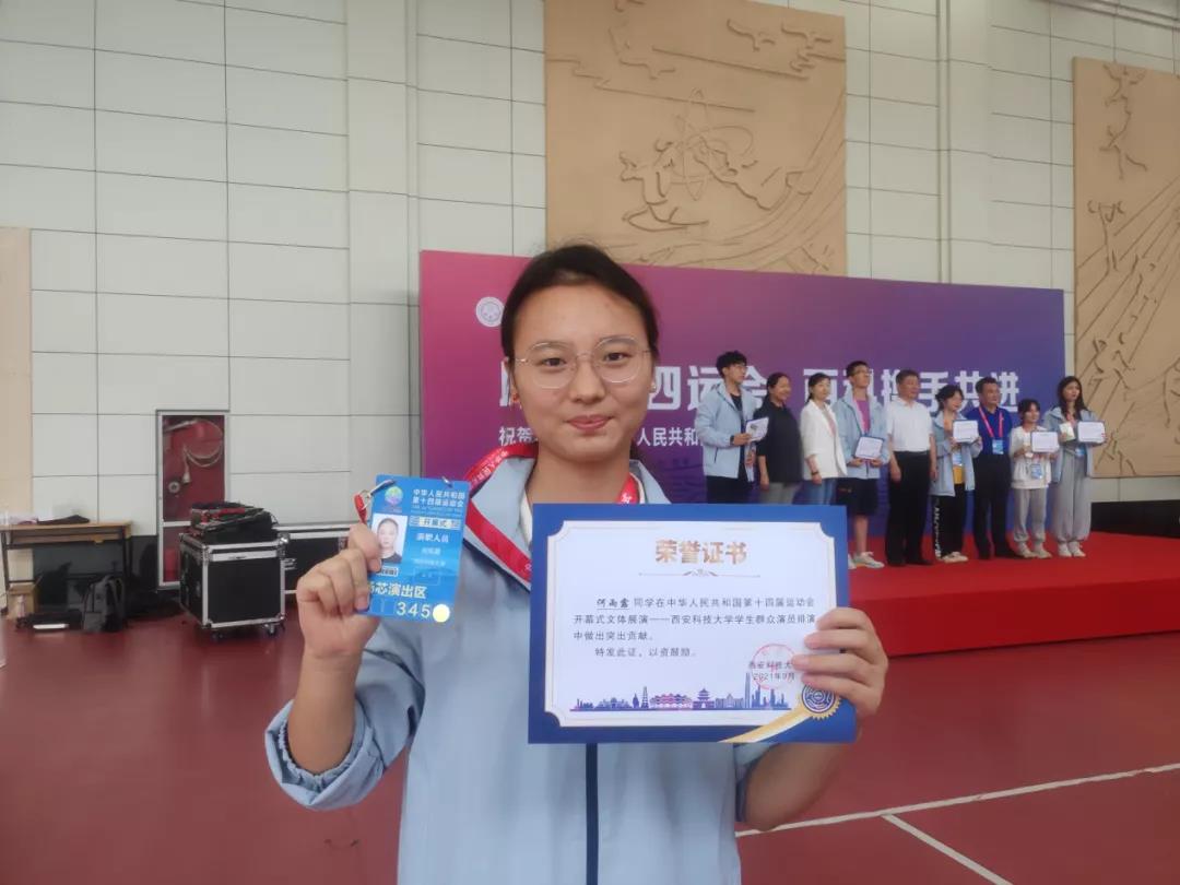 在谈到为什么能入选十四运学生群众演员时,何雨露笑着说:“可能是我运气比较好吧。”
