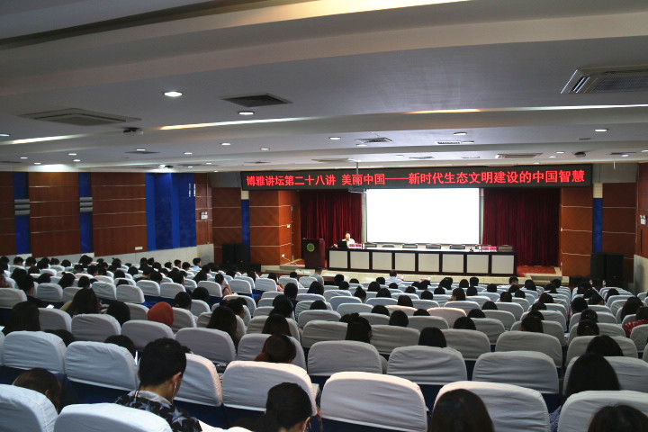 5月24日下午,球王会体育官方网站博雅讲坛第28讲在骊山校园图书馆报告厅举办,西安电子科技大学马克思主义学院院长李刚教授应邀作了“美丽中国——新时代生态文明建设的中国智慧”主题报告。院长师新民主持报告会并致欢迎词,院党委副书记张振中、院团委书记张晶晶及300 余名师生聆听了报告。