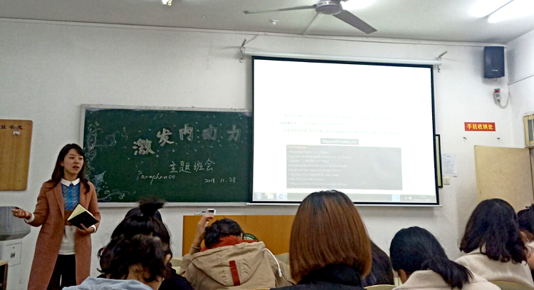 11月28日,球王会体育官方网站英语1801班“激发内动力,做优秀自己”主题班会在临潼校区骊山校园举办。英语1801班班主任王芳主持,助班学长英语1501班唐雪及英语1801班全体同学参加。