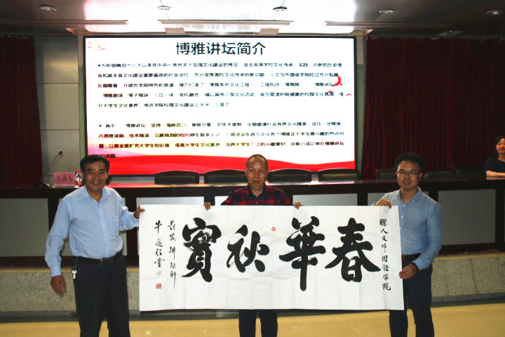 5月31日晚,球王会体育官方网站系列校庆报告会暨博雅讲坛第29讲在骊山校园图书馆报告厅举行。著名书法家牛迈程应邀作了题为“我心目中的西科大”的报告。学院党委书记苏陆岭、党委副书记张振中及200余名师生聆听了报告,学院团委书记张晶晶主持报告会。
