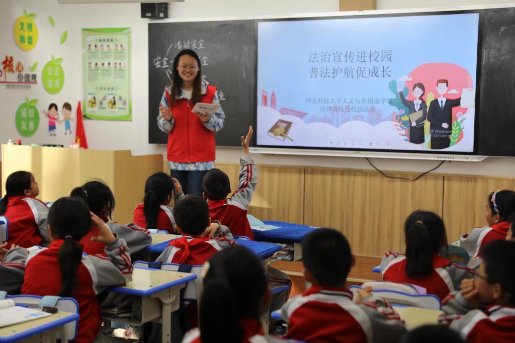 为进一步宣传贯彻习近平法治思想,推进青少年法制教育,积极响应开展学习贯彻习近平新时代中国特色社会主义思想主题教育专题学习,引导团员和青年在奉献社会、服务群众中锤炼思想、锻炼成长,10月25日,球王会体育官方网站法学2201团支部成员与临潼区行者街道司法所共赴临潼区金骊小学开展“法制进校园”知识讲座活动。