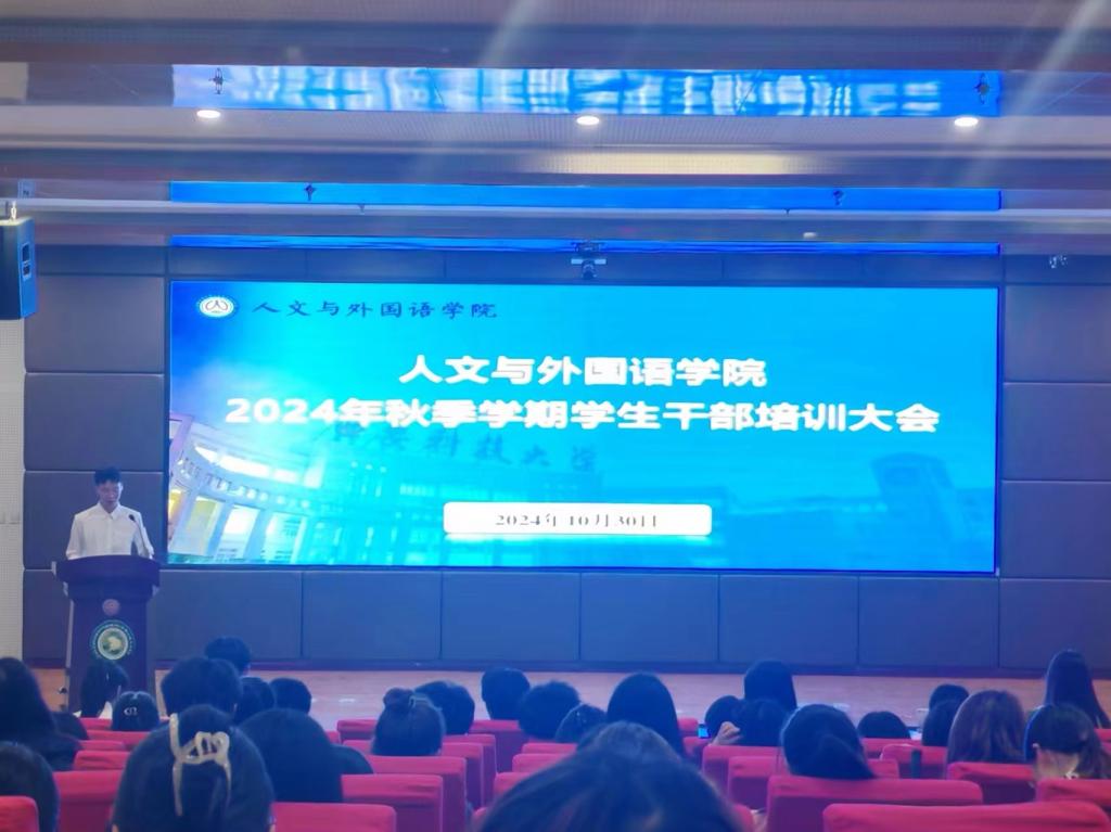为加强学生干部队伍建设,充分发挥学生干部的思想引领和模范带头作用,10月30日晚,球王会体育官方网站举办2024年秋季学期学生干部培训大会,学院团委书记芮智刚、2024级辅导员王维蒙、全体班干部、各宿舍舍长、团委学生会全体干部参加了会议,会议由学生会主席欧彪主持。