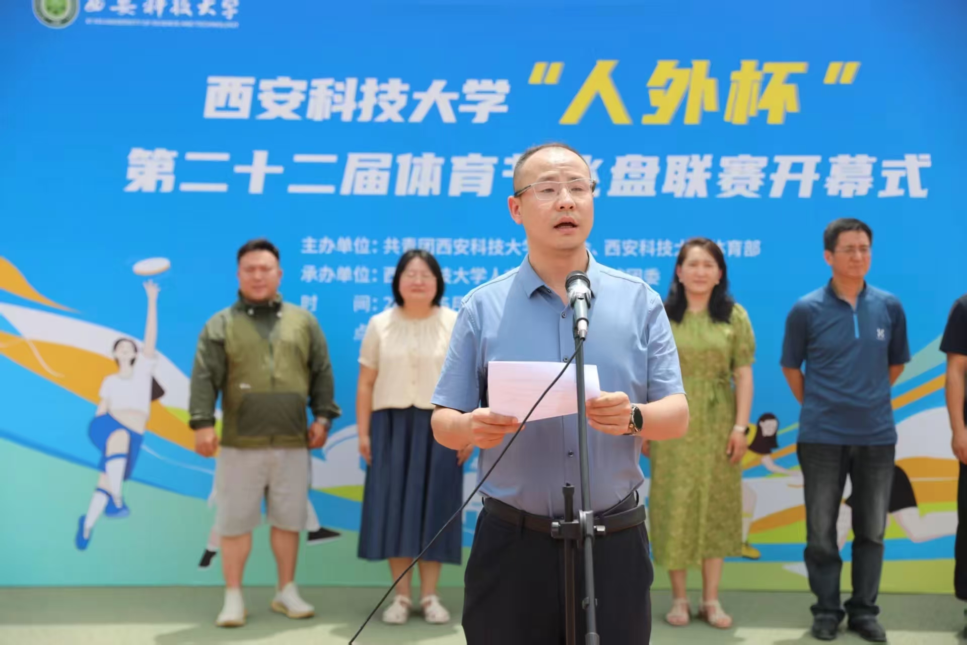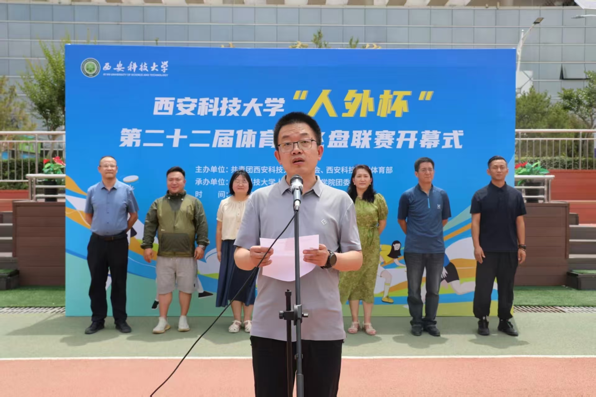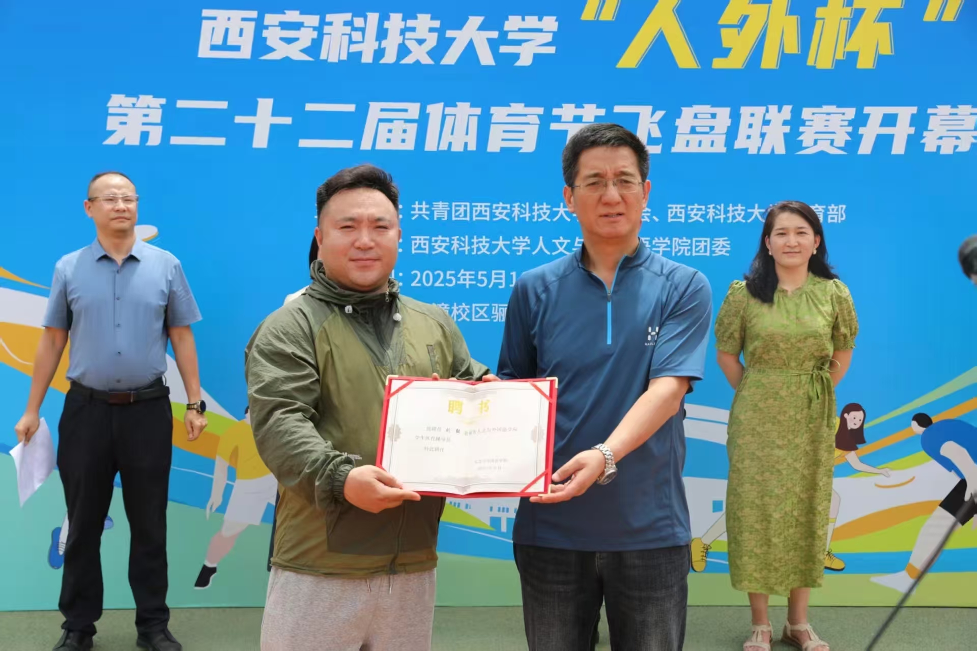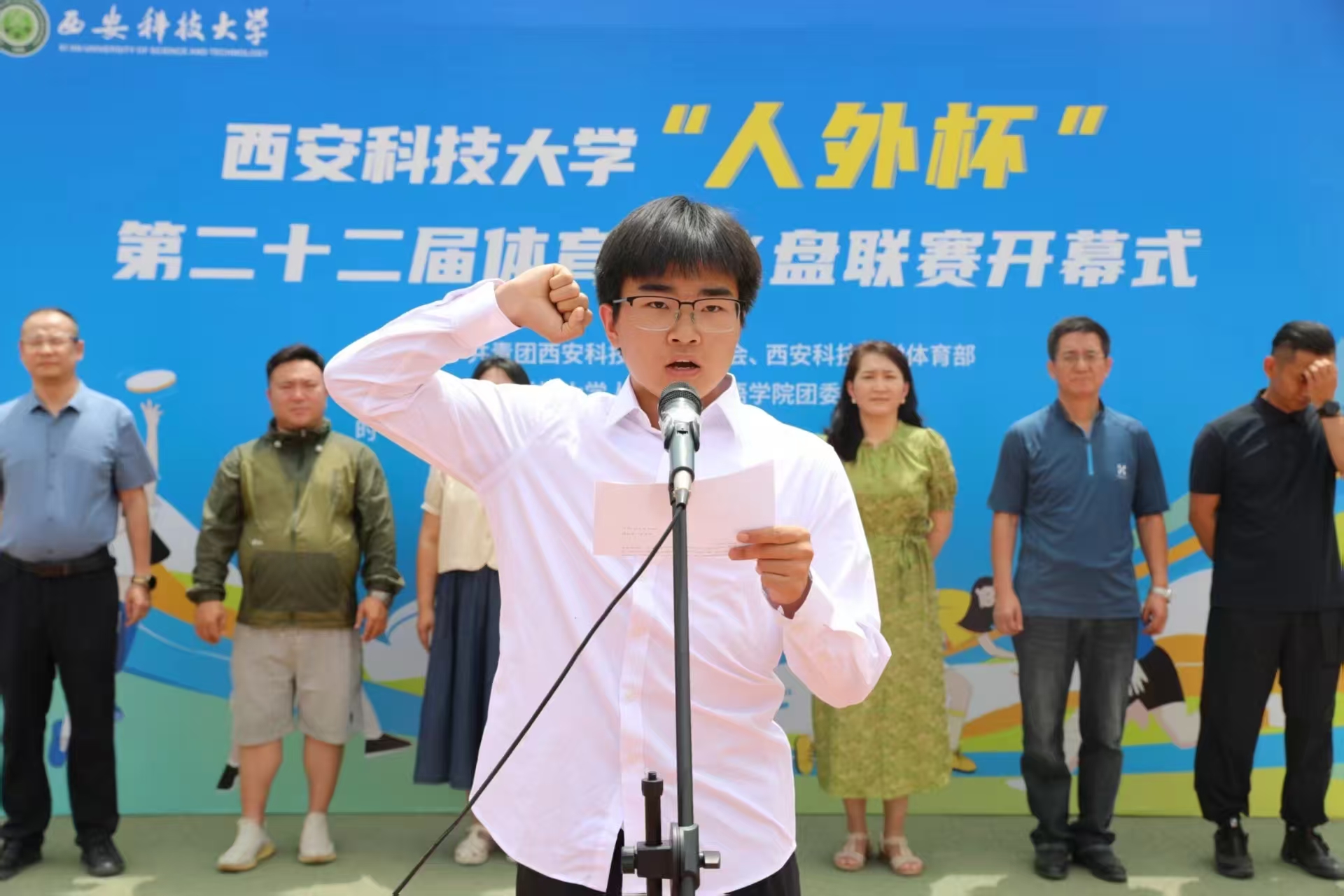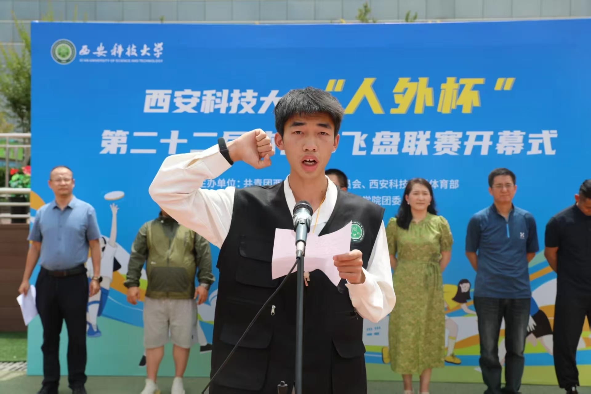 5月16日,由校团委、体育部主办,球王会体育官方网站团委承办的球王会体育官方网站“人外杯”第二十二届体育节飞盘联赛开幕式在骊山校园小田径场成功举办,校团委副书记孙小娜,体育部党总支书记孟凡静,体育部副主任刘巍,体育部教师、球王会体育官方网站学生体育辅导员刘毅,球王会体育官方网站党委书记费秀水、院长王新平,全体裁判员、运动员、志愿者参加了开幕式,开幕式由球王会体育官方网站党委副书记邢皓越主持。