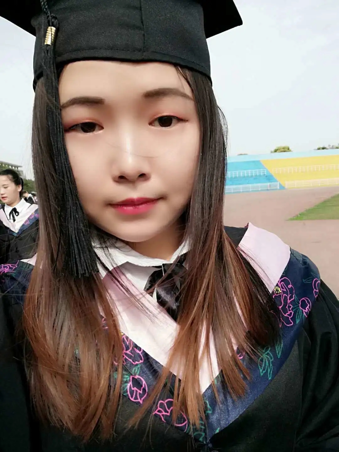 毕业离校之际,许鸽着毕业服的照片
