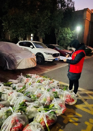 同时,我院教工第二支部潘小玉、张小涓也积极投身防控志愿活动。潘小玉自2021年12月28日起自愿申请成为曲江新区华侨城108坊社区志愿者,在中海东郡小区作为“党员先锋防疫志愿者”小组组长为10号楼96户发放物资;每天给有老弱病残及孕产妇的住户提供上门服务(送生活用品、药品、跟进上门核酸检测);挨户通知及时做核酸检测,做到应检尽检。张小涓在2022年1月4日与电控学院赵永秀等四位教师一起做志愿者,负责球王会体育官方网站东院24栋、25栋楼、小二楼的核酸检测登记。由于一码通故障,整个过程持续5个多小时。教师们一直坚守岗位到任务完成。下午晚些时候,志愿者还帮忙将爱心菜给27栋住户逐户送上门。