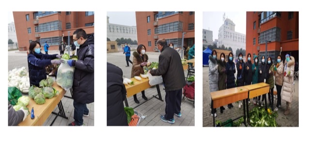 1月6日下午,四川巴中老区捐赠的爱心菜送到球王会体育官方网站北院家属区,同属大英二部的教师郭小芸与李焱一起,主动参加志愿者服务,在学校相关部门的有序组织下,冒着严寒为北苑住户领菜。现场分工明确,组织有序,经过两个多小时热火朝天的奋战,家属区的全部老师们领到了这些爱心菜。