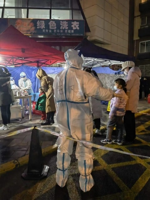 英语系于凡自高新区封控以来,就主动申请加入高科花园的志愿者团队。在小区十余天的封控期间,于凡所在的志愿者团队和小区物业人员一起,组织小区19栋楼的2000余住户进行了多次核酸检测,冒着严寒将政府的救援物资连夜发放到每一位住户手中,为了避免漏检还爬楼梯挨家挨户核对核酸检测信息,为小区的疫情防控和生活保障做出了贡献。