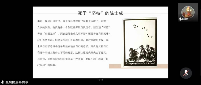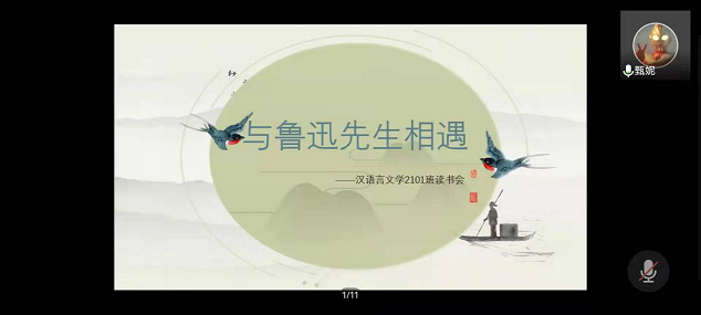 1月14日,球王会体育官方网站汉语言文学专业举办了以“与鲁迅先生相遇”为主题的线上读书交流会,指导老师宋海婷以及汉语言文学21级全体学生参加了本次活动。
