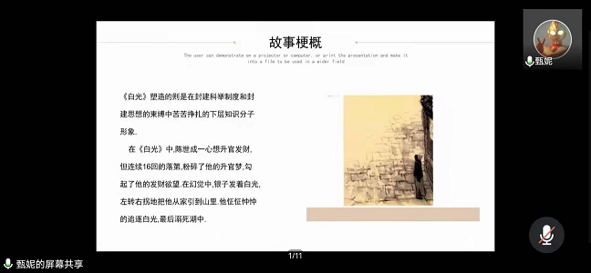 本次读书会使同学们在最纯净的心灵之旅中与鲁迅先生来了一场奇妙的相遇,对先生的作品有了更深刻的领悟,更重要的是提高了我们的专业素养与协作能力。