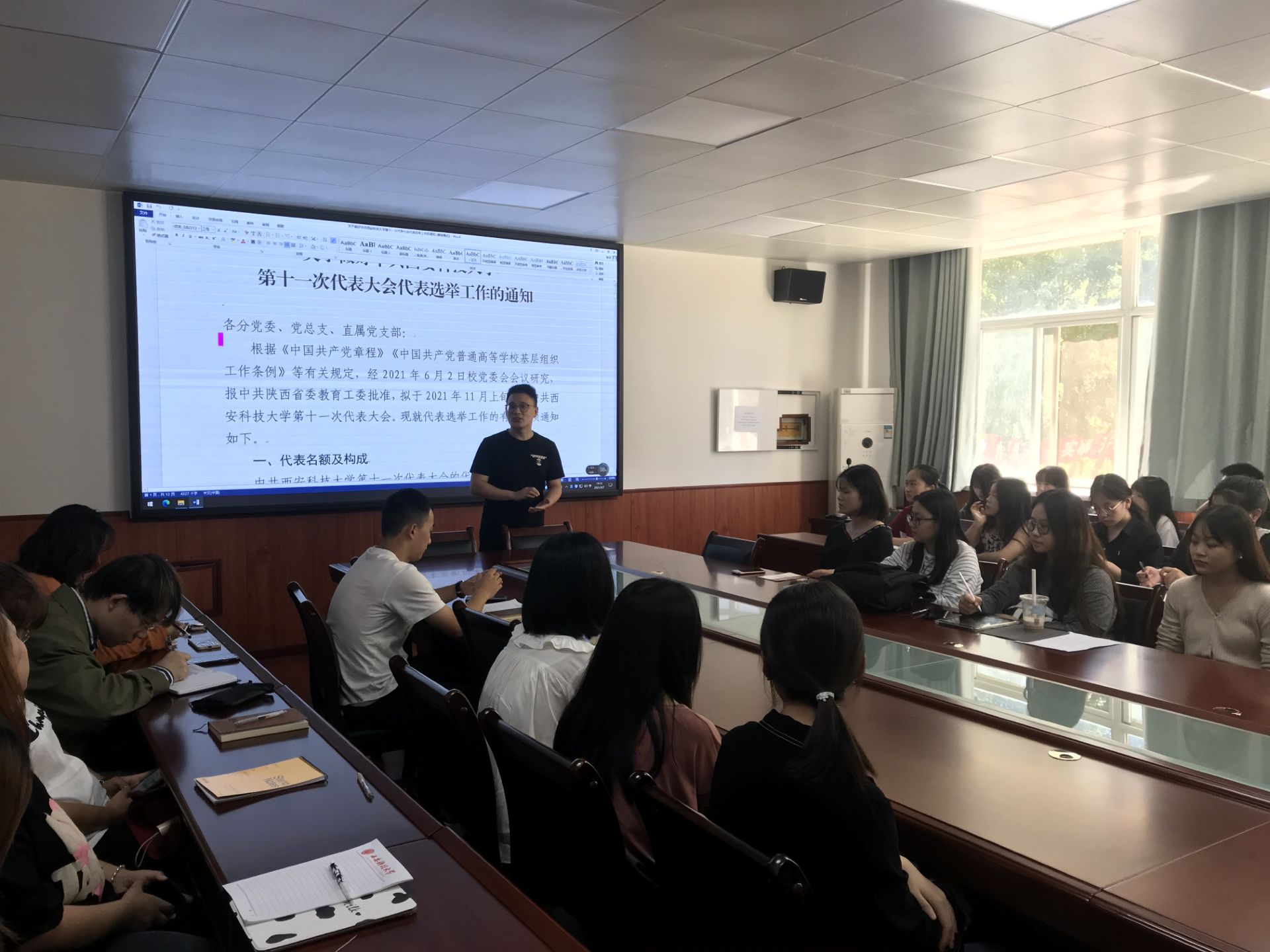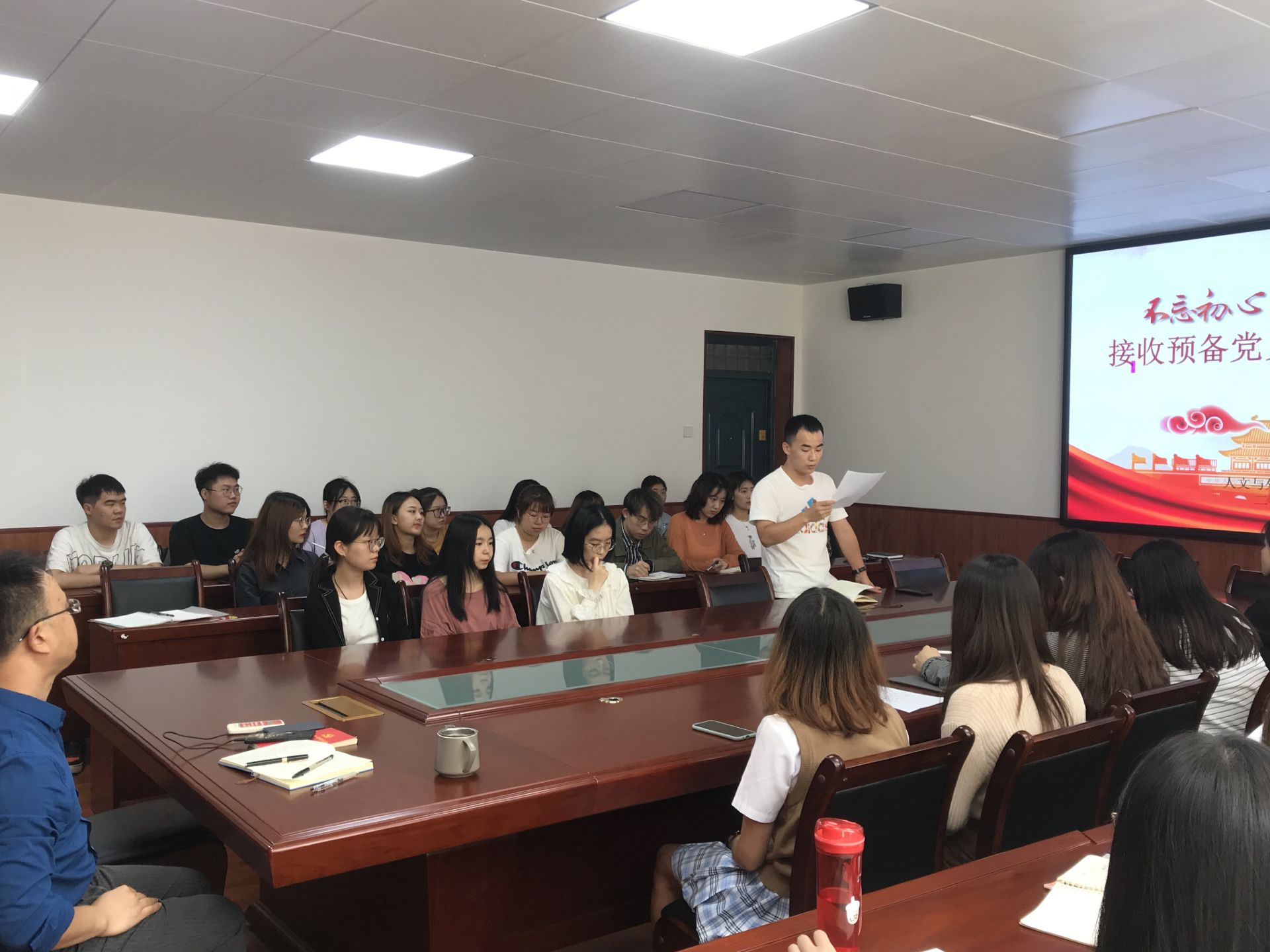 大会开始,李银亮同志首先介绍了学校第十一次代表大会选举文件以及预备党员转正流程,包括转正所需的各项申请材料,说明党支部严格按照程序讨论转正。