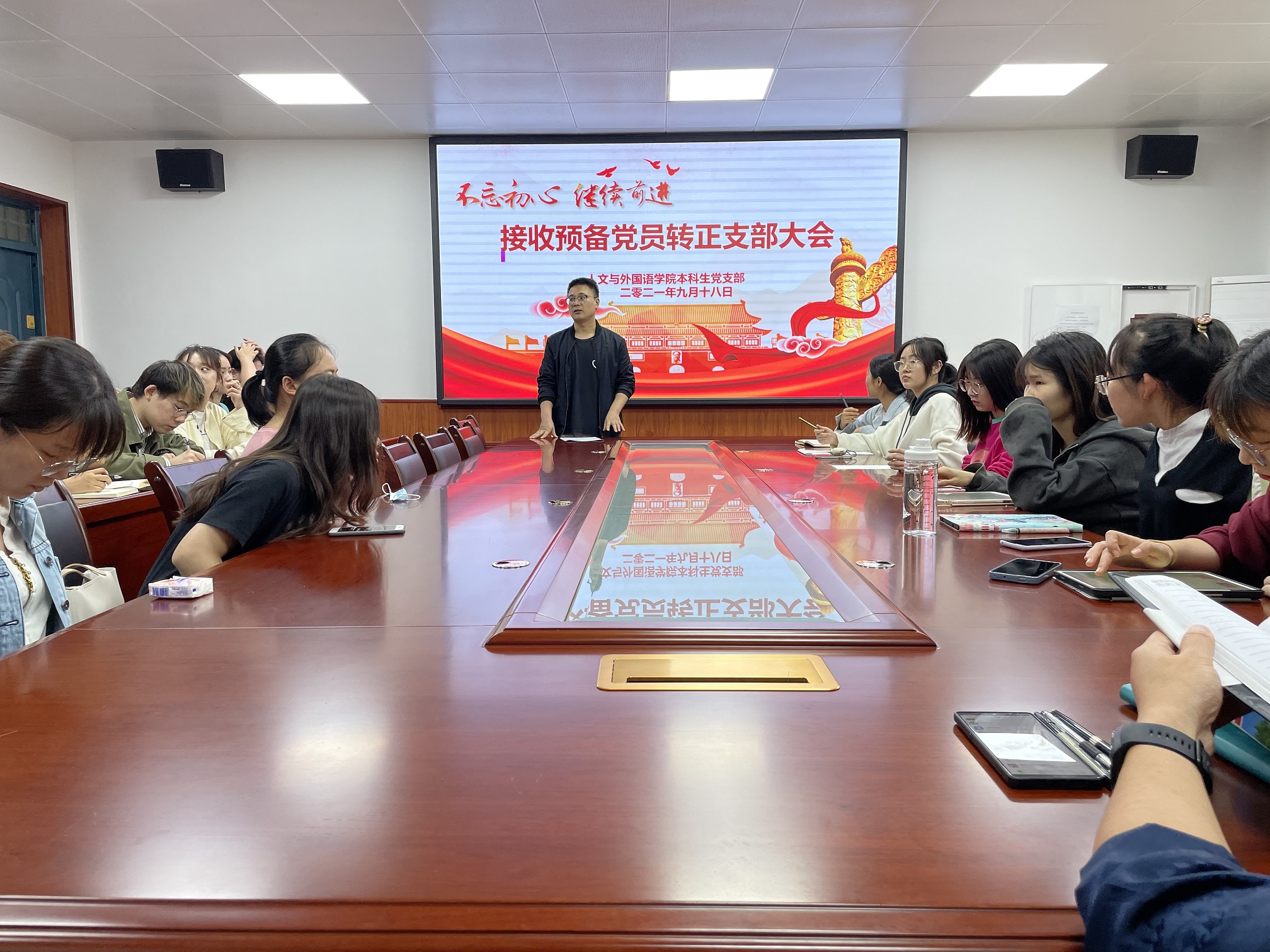 9月18日上午,球王会体育官方网站本科生党支部于二教226会议室召开接收预备党员转正支部大会。院党委副书记张振中及党支部全体成员参加了此次会议,本次会议由学院本科生党支部书记李银亮主持。会上,李亮亮、石海廷、韦雪、黄运鹏四位同志就自身的学习、生活和工作等方面的情况做了陈述。随后,樊杰杰同志传达了党组织意见,同意四位同志成为正式党员。接着其他各位同志依次发言,谈了四位同志在学习、生活等多各个方面的情况。 接收工作结束后,张振中对支部成员做出了殷切的期望:“作为人文学院的学子,要做一个既优雅高贵又温暖四方的人,作为一名学生党员,则更要成为一个为人民服务的人。”