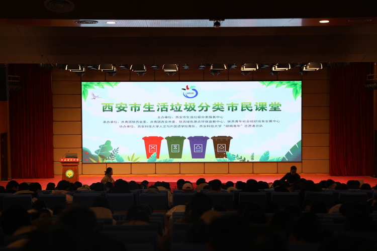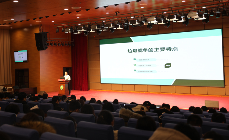 12月4日下午,“西安市生活垃圾分类市民课堂”暨《西安市生活垃圾分类管理条例》普法宣传活动走进球王会体育官方网站。球王会体育官网球王会体育官方网站2004届毕业生、有丰富基层工作经验的朱振华讲师作了题为《用条例指引,坚决打赢垃圾阻击战——从军事角度解读》的专题讲座,600名余师生参加本次活动。
