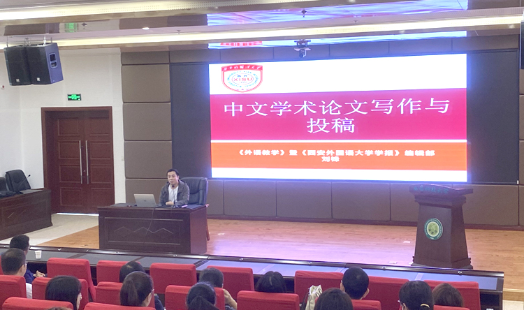 9月23日下午,球王会体育官方网站在临潼校区煤炭科技中心二层报告厅举办“中文学术论文写作与投稿”专题讲座。西安外国语大学刘锋副教授应邀担任主讲,结合自己科研论文写作与编辑审稿校对的实际经验,从学术论文的选题来源、研究定位、研究选题、撰写要点、投稿发表等方面分享了关于论文写作与投稿的思考,让师生们对科研写作和论文发表有了更深刻的认识。在提问环节,刘锋耐心解答了现场师生在论文写作过程中遇到的实际问题,给出了中肯可行的建议,并表示,科学研究以追求真理为根本目标,我们要做真学问,真做学问。