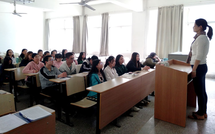 在“一年之计在于春”主题班会中,郭萌向学生介绍新学期的课程安排,要求每位学生陈述自己的新学期计划,并结合自己亲身经历,就每位学生的计划提出了针对性建议。