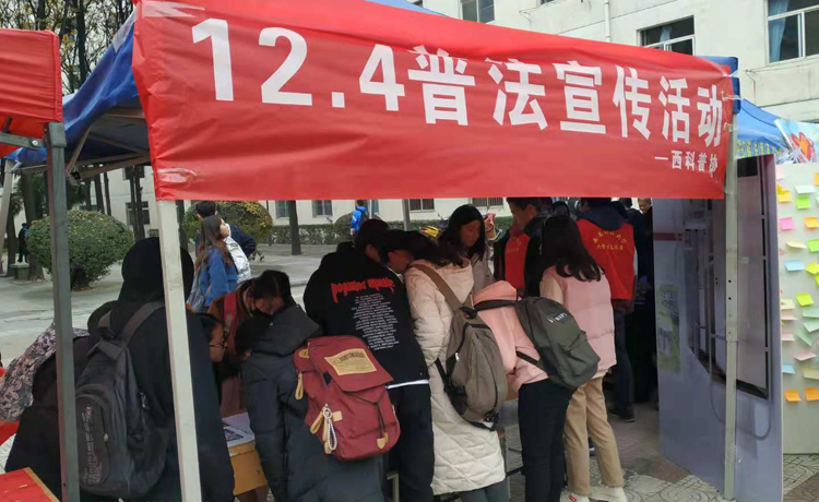 12月4日是我国第五个宪法日,我院法学系的学生联合学校法律协会积极响应国家号召,开展了以“尊崇宪法、学习宪法、遵守宪法、维护宪法、运用宪法”为主题的校园普法宣传活动。
