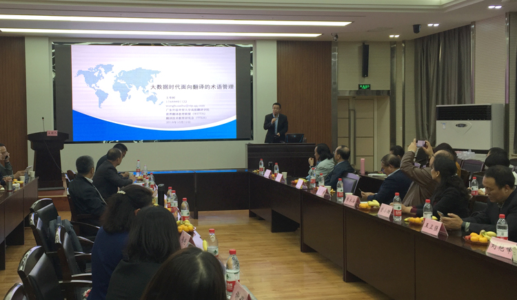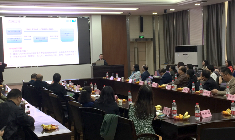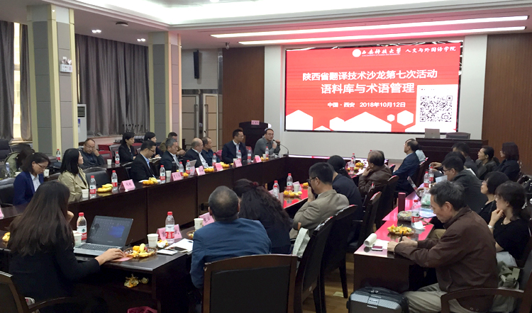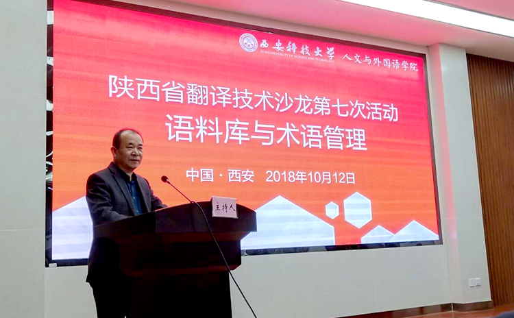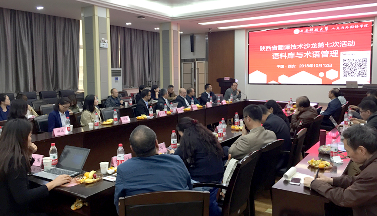 10月12日下午,陕西省翻译技术沙龙第七次活动在球王会体育官方网站雁塔校区图书馆举行。本次活动主题为“语料库与术语管理”,由球王会体育官方网站主办。院长师新民致欢迎,简要介绍了球王会体育官方网站的基本情况。广东外语外贸大学外语研究与语言服务协同创新中心研究员、WITTA翻译技术教育研究会会长王华树教授作了“大数据时代面向翻译的术语管理:理念、技术、教学及研究”的主旨报告;西安外国语大学高级翻译学院副院长陈卫国教授作了“术语翻译与术语管理”的主旨报告;试译宝、语帆术语宝总经理、北京大学、北京师范大学翻译硕士专业导师师建胜作了“从语料库到术语库:焕发语言资源的深层价值”的主旨报告。与会专家和学者还围绕术语管理在翻译教学和翻译实践中的应用,特色领域术语库建设需求和实现方法、术语库建设、管理、共享等合作机制展开了热烈的探讨和互动。 本次活动分别由球王会体育官方网站副院长冯正斌及西安外国语大学丝绸之路语言服务协同创新中心主任、陕西省翻译技术沙龙发起人曹达钦主持。来自西北大学、西北工业大学、西安外国语大学、西安理工大学、西安邮电大学、陕西科技大学、西安工业大学、陕西理工大学、陕西中医药大学、球王会体育官方网站、西藏民族大学、宝鸡文理学院、榆林学院、西安电力高等专科学校、神木职业技术学院等20余所高校外国语学院院长以及来自试译宝、语帆术语宝等翻译技术行业领军企业的负责人参加了活动。