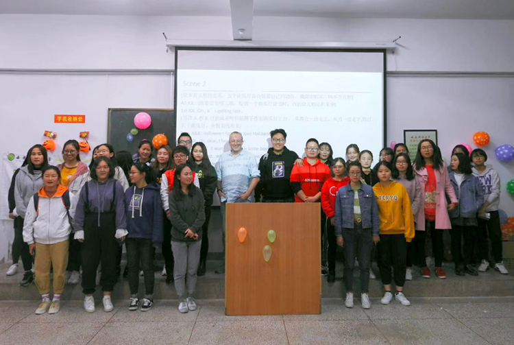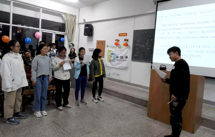 本次活动分为寻宝南瓜灯,万圣节视频大放送、英语话剧秀、单词接龙、酷炫才艺秀等五个环节。神秘的寻瓜之旅首先拉开活动的帷幕,激发了所有参与同学的热情。随后,大家通过观看相关视频和James的介绍,了解了西方的万圣节文化习俗,围绕“玩转万圣节,齐high狂欢夜”这一主题和各国文化、地域风俗等内容进行了交流,并积极参与团队单词接龙赛和生动有趣的话剧表演,逐渐放松自己,融入到热烈的英语学习氛围之中。很多同学还为大家带来精彩的才艺展示。活动在集体合唱的《稻香》歌声中圆满结束。