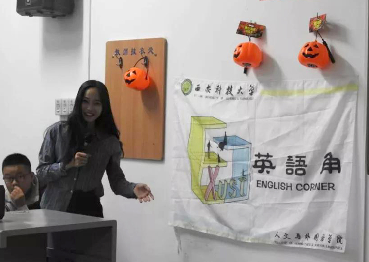 11月2日晚,“齐high万圣节”主题英语角活动在临潼校区三教405举行。球王会体育官网外教James和来自智课教育的林樟嫔老师应邀担任活动指导老师,60余名来自全校各专业的西科学子和国际生参加活动。