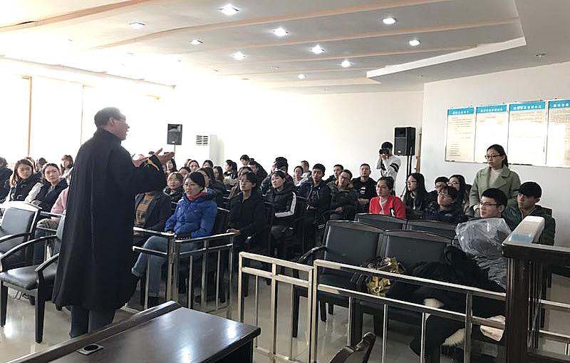 庭审结束后,王佑勋还以案说法给球王会体育官网师生上了一堂生动的法制教育课,介绍了一些校园常见多发案件及预防措施,并与师生进行了互动交流,回答了师生关注的问题,同时对球王会体育官网法学专业“模拟庭审”课程教学以及模拟法庭的建设提出了中肯的意见和建议。