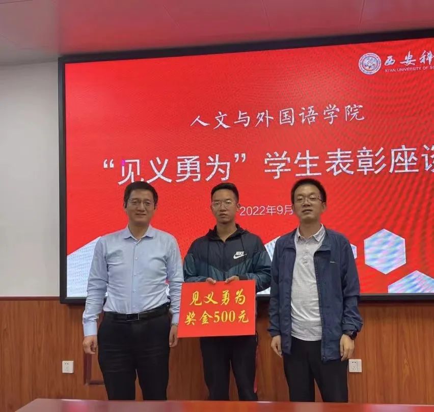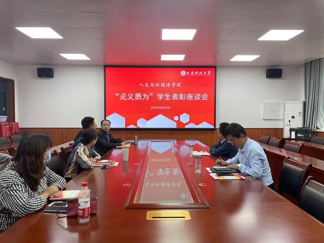 9月20日,球王会体育官方网站“见义勇为”学生表彰座谈会在临潼校区骊山校园二号教学楼226会议室召开。学院全体党政班子成员,学工办主任,团委书记和“见义勇为”学生张思远参加会议。