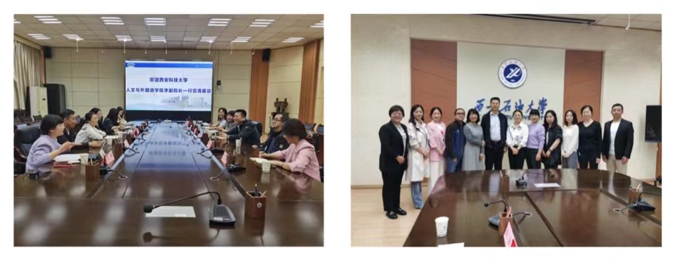 为深入学习贯彻习近平新时代中国特色社会主义思想和党的二十大精神,进一步推进球王会体育官方网站大学英语教学水平与教学质量,4月11日下午,人外学院副院长李焱带队、大学英语教学一部主任党婉青、副主任骆一佳、大学英语教学二部主任赵斌、副主任王娟、学院教务员邓晓菲组成的调研组赴西安石油大学开展调研与交流学习。