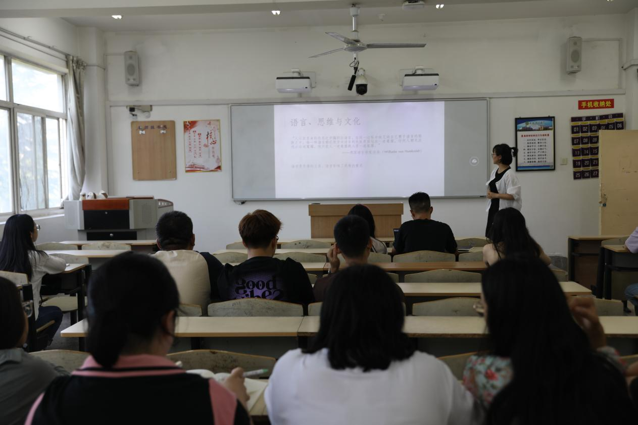 专题会上,刘琳代表学院对2023级研究生新生的到来致以热烈的欢迎和衷心的祝贺。随后,她以英、汉两种语言的形式和表达习惯为切入点,利用原诗和译本的对比引出“语义型语言”和“语法性语言”两种结构,通过对“句子的开放与封闭”、“散点与焦点”、“宽式语言与严式语言”、“对偶句与主从句”等句式框架、结构、类型的说明,证明中西方哲学思维的差异以及不同思维模式对语言的影响。