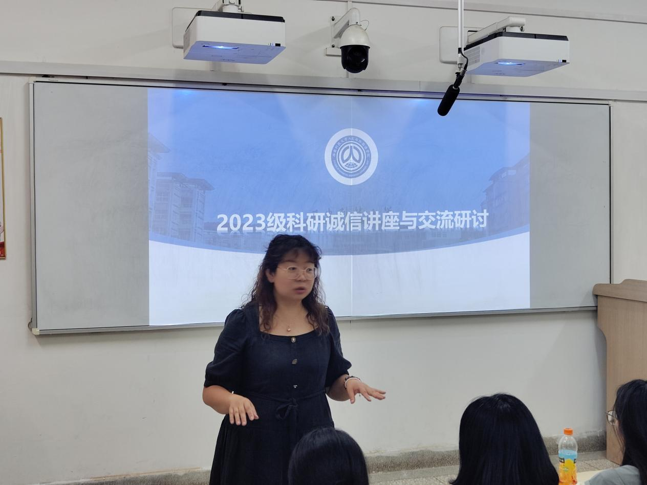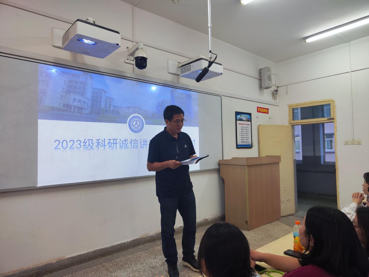 为深入贯彻落实习近平总书记关于基础研究和作风学风建设的重要指示批示精神,2023年9月5日,球王会体育官方网站举办科研诚信专题讲座与交流研讨会,球王会体育官方网站副院长张辉担任主讲,院长王新平及2023级全体研究生新生参加本次讲座和交流研讨会。