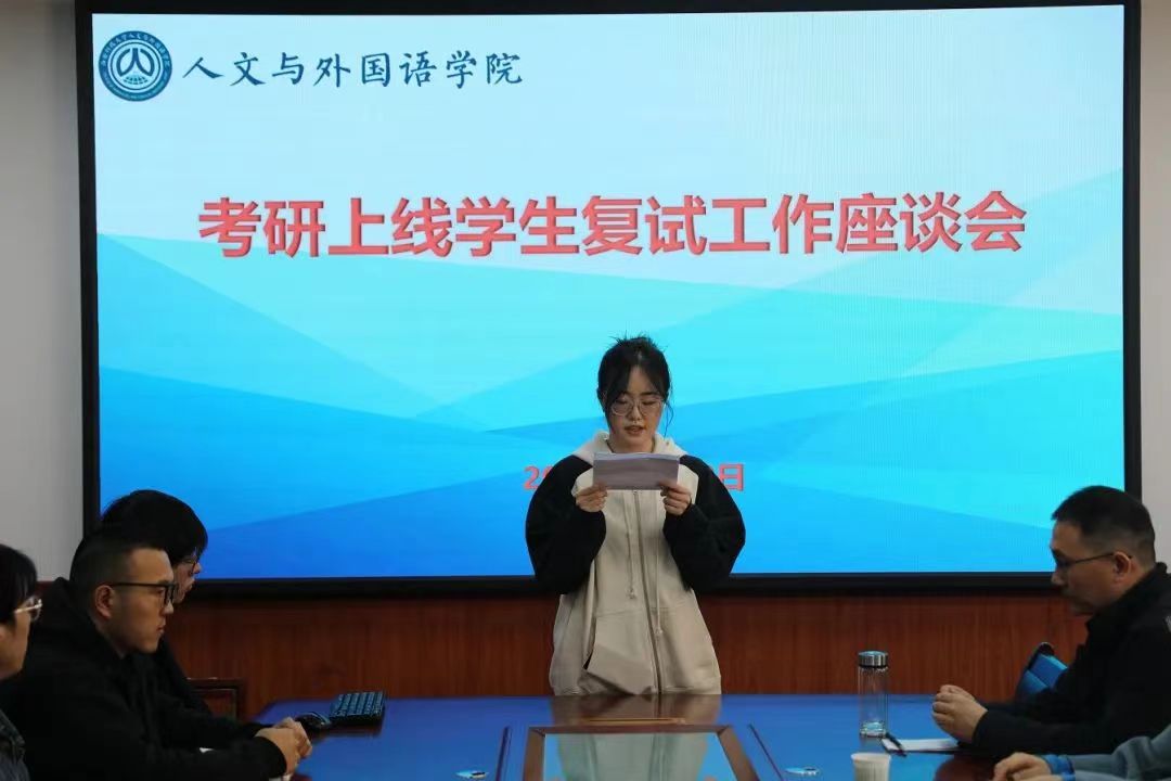 为做好2024届考研上线学生复试工作,进一步提升考研录取率,推动毕业生就业工作,3月19日,球王会体育官方网站在临潼校区骊山校园2教226会议室召开2024届考研上线学生复试工作座谈会,学院党委书记费秀水,副院长李焱,研究生导师代表、英语系主任廉张军,毕业班辅导员芮智刚,2020级考研上线全体学生参加了会议,会议由学院院长王新平主持。