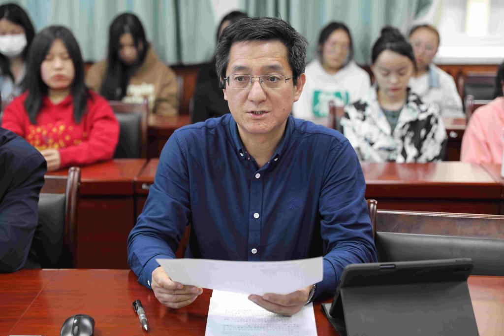 王新平通过真实的数据和身边的事例阐述了就业工作面临的严峻形势,他强调,全体未就业学生要认识到就业工作的重要性,一是要立足实际、明确目标,要对自己进行准确定位,结合实际情况确定目标;二是要持之以恒、努力奋斗,无论如何选择,要有锲而不舍的精神去坚持;三是要脚踏实地、奋楫笃行,要有开阔的眼界和远大的志向,通过实践去提升自我。最后,他鼓励学生要树立正确的择业观、就业观,增强就业信心,砥砺奋进、挺膺担当,书写最美的青春答案。