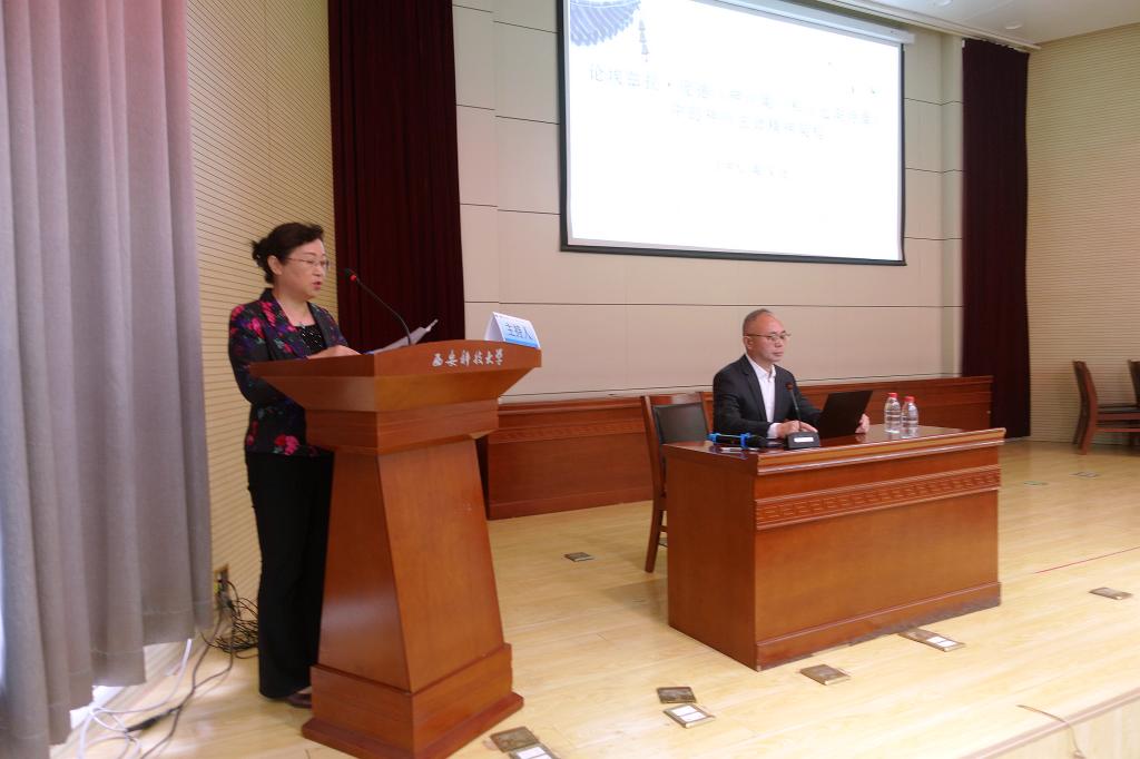 第二场主旨报告由长安大学外国语学院院长冯正斌教授主持。主讲嘉宾河南大学张璟慧教授的报告题目为:“以‘化’成天下——20世纪法国哲学对英美理论界的影响”。张教授通过追本溯源发现,当今英美理论的重要源头正是20世纪下半叶的法国哲学;认为20世纪下半叶的法国哲学极大地影响了英美哲学及文论,探讨20世纪英美理论的渊源具有重要的意义与价值。