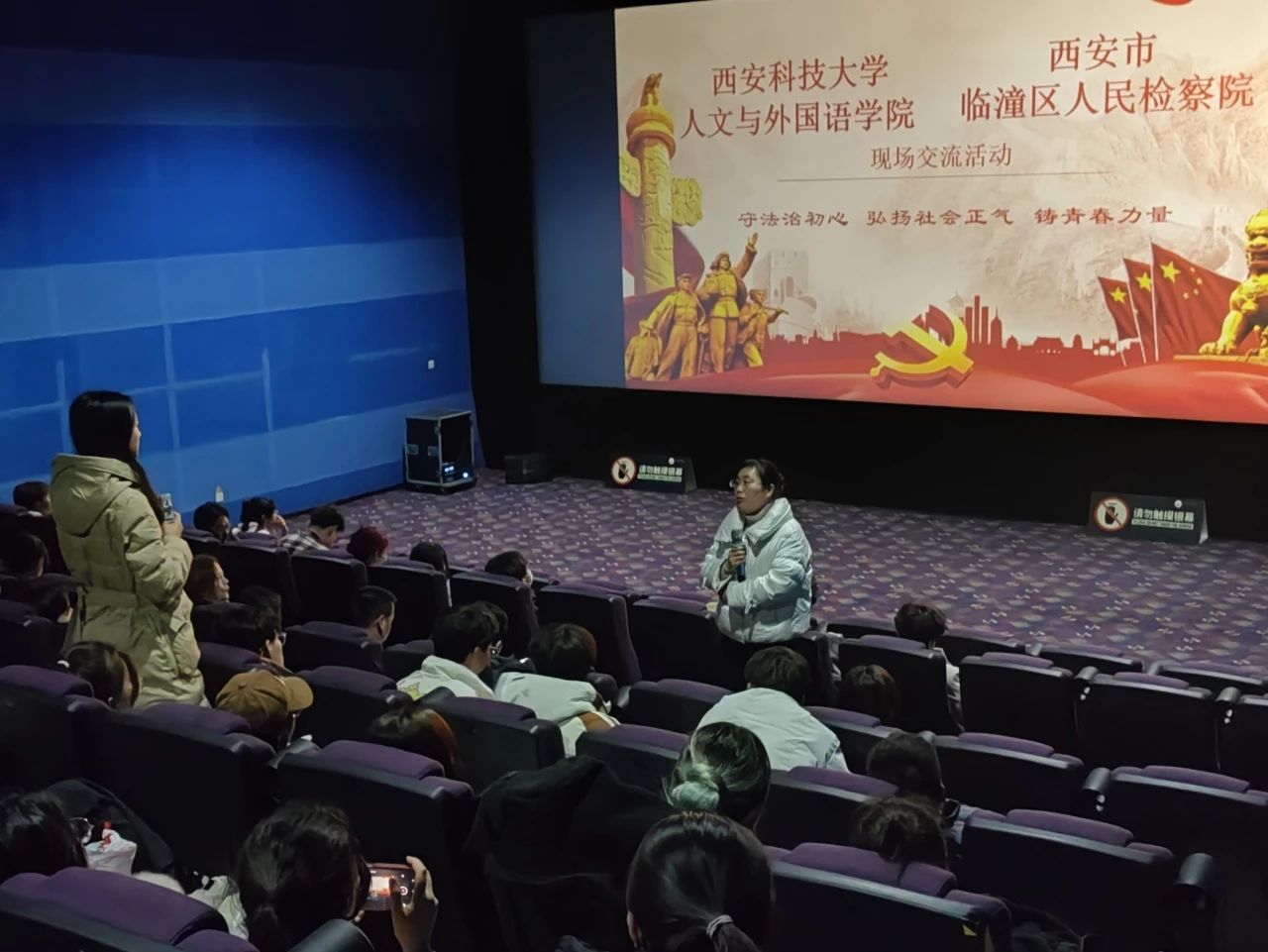 检察院工作人员阐述了观影感受,结合电影情节与生活真实案例作出细致分析,耐心地对学生提出的问题进行答复,勉励学生要秉持学法的初心与使命,树立维护社会公平公正和满足人民的幸福期许的核心理念。