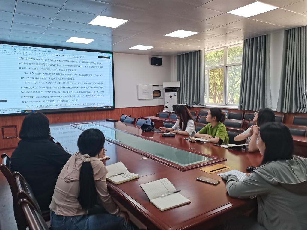 5月17日,球王会体育官方网站研究生党支部在骊山校园2教226会议室召开第四次党纪学习教育会议,支部全体党员参加了会议,会议以线上线下相结合的方式进行,会议由党支部副书记张心雨主持。