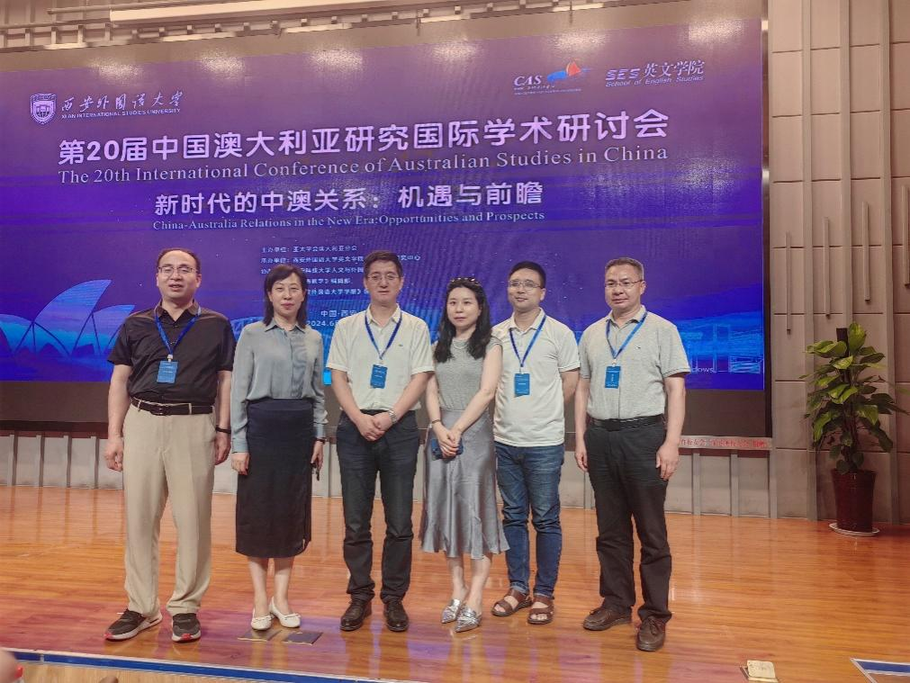 6月8日至9日,由中国亚太学会澳大利亚分会主办、西安外国语大学英文学院和澳大利亚研究中心承办、球王会体育官方网站协办的“第20届中国澳大利亚研究国际学术会议”在西安外国语大学长安校区隆重召开,本次会议主题为“新时代的中澳关系:机遇与前瞻”。来自自清华大学、北京外国语大学、华东师范大学、中山大学、山东大学等中国知名高校,以及澳大利亚国立大学、悉尼大学、新南威尔士大学、格里菲斯大学等世界知名高校及研究机构的120余位专家学者齐聚一堂,共促学术发展。本次会议邀请了5位国内外专家作主旨报告,此外还设有7个分论坛,分别就政治、经济、文学、文化、媒体、语言、教育等领域的热点话题进行交流研讨。球王会体育官方网站王新平院长带领时健、高宝萍、席东、张军锋、秦声等5位老师出席会议。王新平院长用英汉双语主持了第一场主旨发言,并与国内外同行进行交流沟通。
