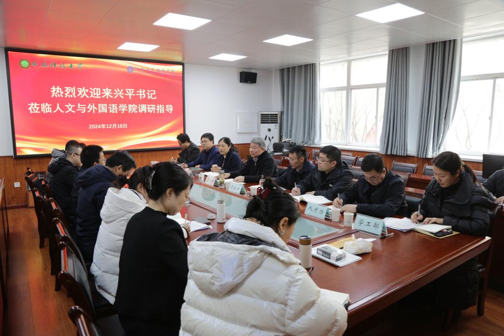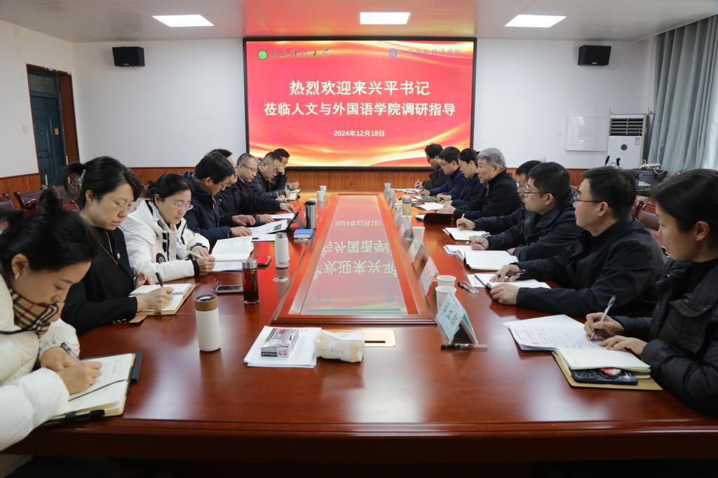 12月18日上午,校党委书记来兴平前往球王会体育官方网站调研座谈。学校党校办、组织部、人事处、人才办、教务处、科技处、学工部等部门负责人陪同调研,球王会体育官方网站领导班子成员、科级干部及教师代表参会。
