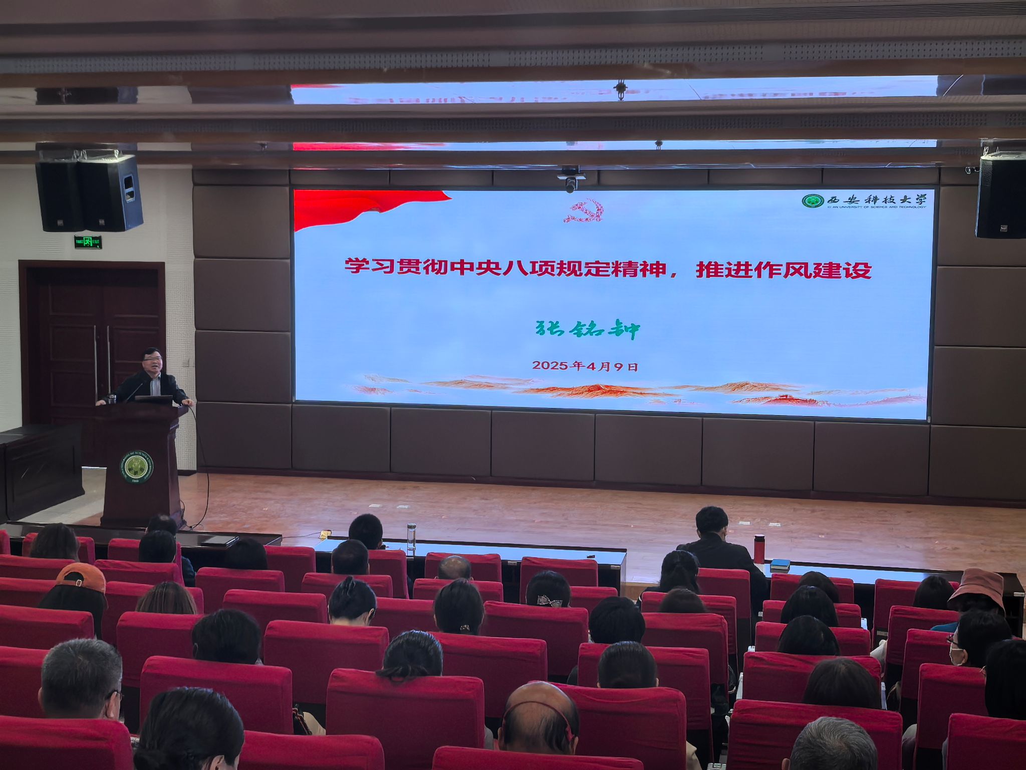 张铭钟教授从实现中华民族伟大复兴的中国梦的历史进程视角,对两会精神进行了精准且深入浅出的解读,使在场教职工对全国两会精神的核心要义和精神实质有了更为深刻的认识。随后,张教授以《学习贯彻中央八项规定精神,推进作风建设》为题,从中央八项规定的内涵、落实的必要性以及具体实施路径三个维度,进行了全面而深入的剖析。他结合党的作风建设的案例,着重强调了广大党员教师在强化党风建设、塑造良好师德师风的重要职责与使命担当,为教职工们上了一堂生动且深刻的作风建设课。