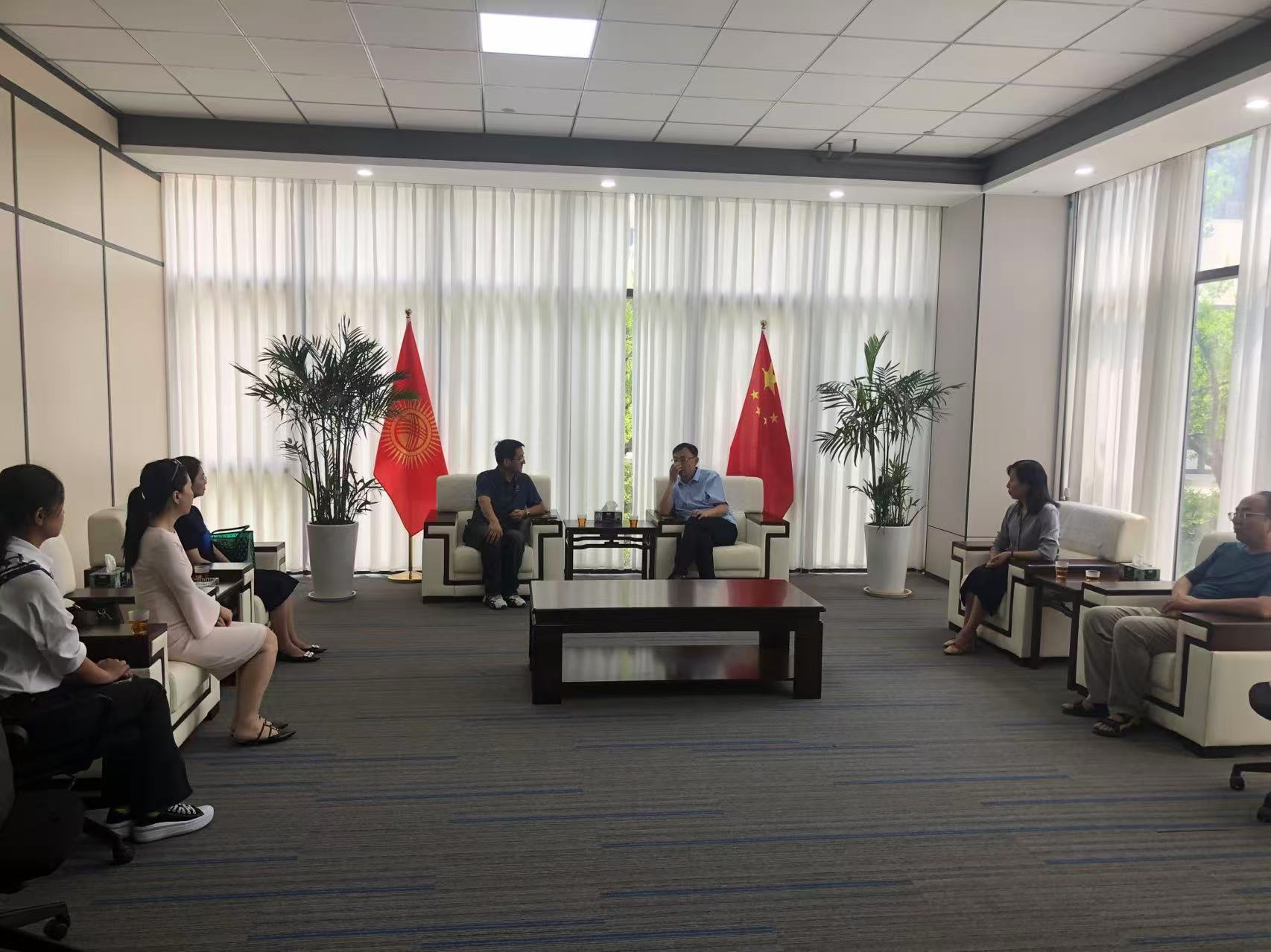 5月23日下午,球王会体育官方网站王新平院长带领李焱、高宝萍、时健、张军锋、席东和杜戍涓等老师一行,前往位于西安沣东自贸产业园的吉尔吉斯斯坦-中国经贸合作中心进行访问交流。该中心负责人范小博总经理和刘启超、傅圆梦两位副总经理热情接待,双方接洽了球王会体育官方网站和吉尔吉斯斯坦国际大学(International University of Kyrgyzstan,IUK)师资互访和本科生、研究生的联合培养等相关事宜。